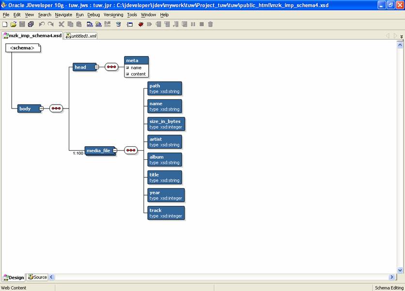 They consists of series of media file “sections� which contains the data I want to store in the database. I used Jdeveloper 10g to create a XML schema which describes this format.