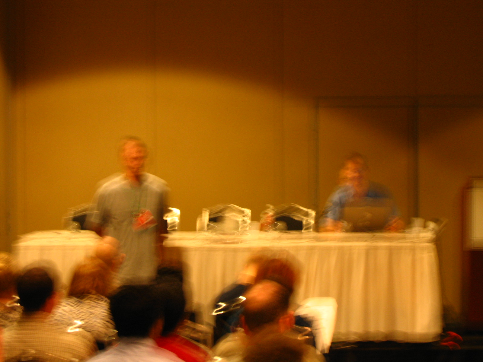 We had a pretty good crowd turn up; Maggie Tompkins, our ambassador, counted 92. Some had to stand. Initially I had the impression that the audience was a bit baffled by the format. They had to tick boxes on a form for the correct answers, in order to qualify for the prize, a free book from the bookstall. And since this conference does not have one, we will accept any Internet Bookstore as the bookstall.