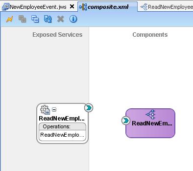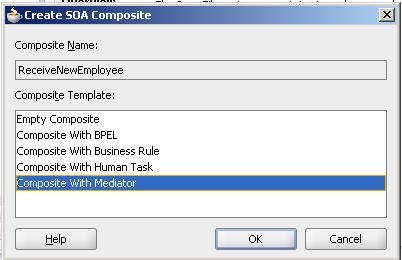 The process I will implement in this article will use the File Adapter service to read Employee details from a file, receive them in a Mediator service that transforms the data and routes them to the Database Adapter service that inserts them into the EMP table in the database. It is nothing very special – in that we can implement this same process in the 10g release of the SOA Suite. It is nice to see what it looks like in the 11g world. And it provides the foundation for the EDN try-out that follows: the arrival of a new Employee is the event we will publish. Consumers may each deal in their own individual way with that event.