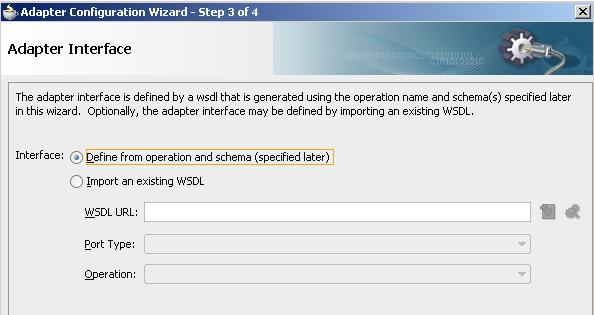 Define the interface (WSDL) later from the operation and schema defined in the wizard: