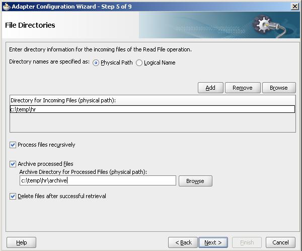 Press Next and specify the directory where the files will appear and should be read from. Also indicate the archive directory where files are stored after having been processed. The processed files themselves are removed from the input directory.