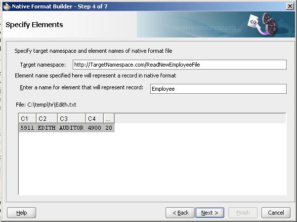 Specify the names of the columns – also used as the names for the child elements in the Schema that will be created.