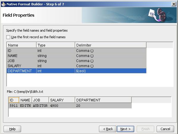 We can select a file with the expected input format and press the Play (Run) button. The XML document that results from the read operation using our configuration details is presented on the right side. Press OK to return to the File Adapter Wizard.