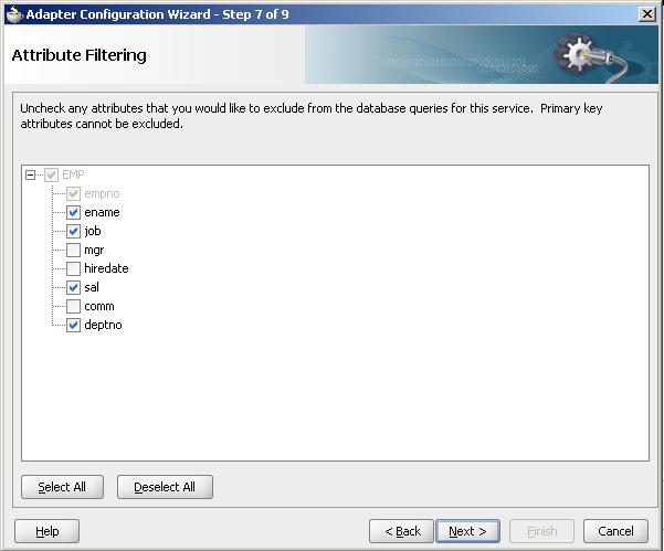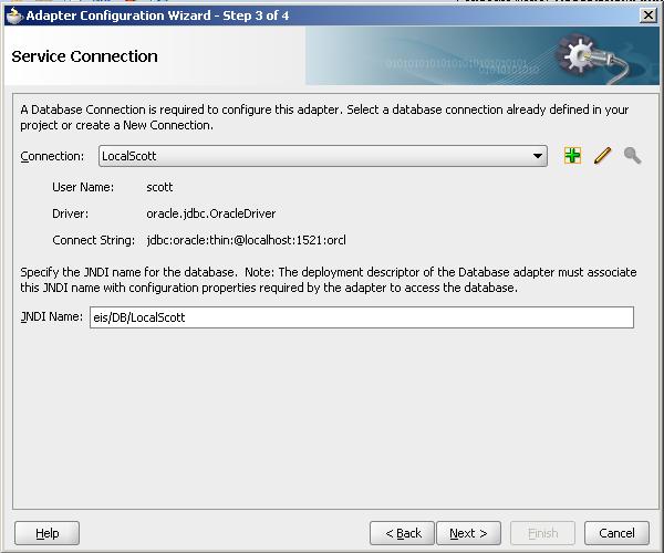 and choose the Database Connection (here we will simply use a connection defined in JDeveloper, for which the details will be deployed to the Application Server).