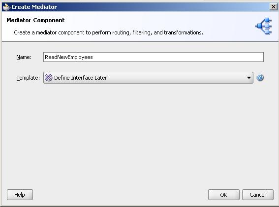 6. Set the name of the Mediator Component – ReadNewEmployees. Define the Interface of the Mediator at a later moment
