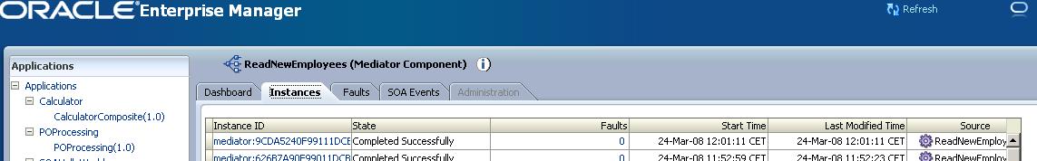 It’s SCA based, it has the Event Driven Network (EDN), a much better integration between the components, an AJAX powered console and a better design time. It’s the all new – yet on many accounts familiar – Oracle 11g SOA Suite. During the Christmas break I started work with the Technology Preview for the 11g release. In the last few months I have not had as much time with the 11g edition – I had to focus on the 10g that is actually used in the real world. Thanks to this early Easter-weekend and the accompanying bleak weather, I have found some more time to look into it. I installed a Virtual Machine with Oracle 10gR2 EE (10.2.0.4), JDeveloper 11gTP3 with the SOA Suite preview and the February upgrade. After configuring SOA on the Integrated OC4J I could quickly get the HelloWorld of SOA running (synchronous BPEL process, input is a simple String, output is that same string, concatenated with Hello. I then tried the somewhat more ambitious PO Processing sample (#105) and almost got it to work.