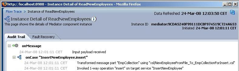 In this article, we have seen how we can implement an end-to-end service that reads files, transforms and routes them and delivers them into a database adapter service that creates records in a database table. Using the Adapter Services and single Mediator component, packaged together in an SCA composite, it took much more time to compose this article than it did to implement the actual process.