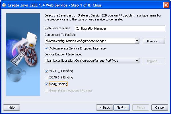 Note: we can use the Java Web Service wizard in JDeveloper to create most of the WSIF-WSDL for us. From the New Gallery, pick Java Web Service: