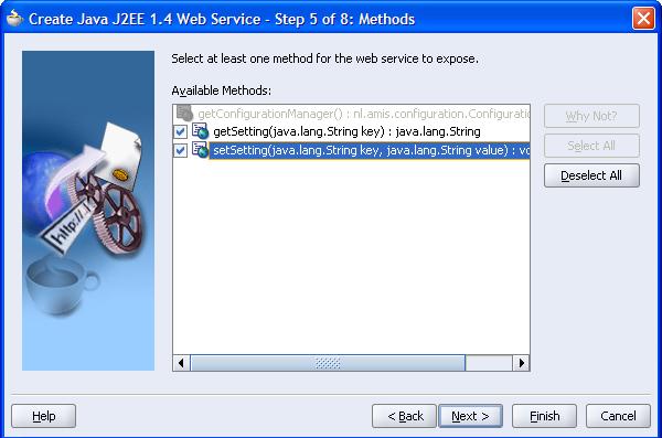 Select the public methods on the class that we want to publish as operations in the Web Service: