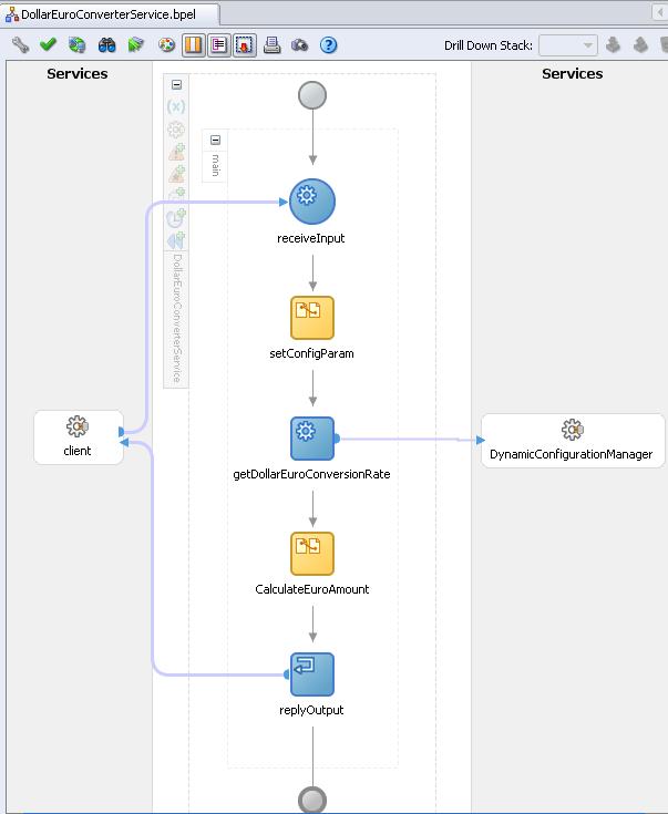 A simple implementation of the DollarEuroConverterService BPEL Process: