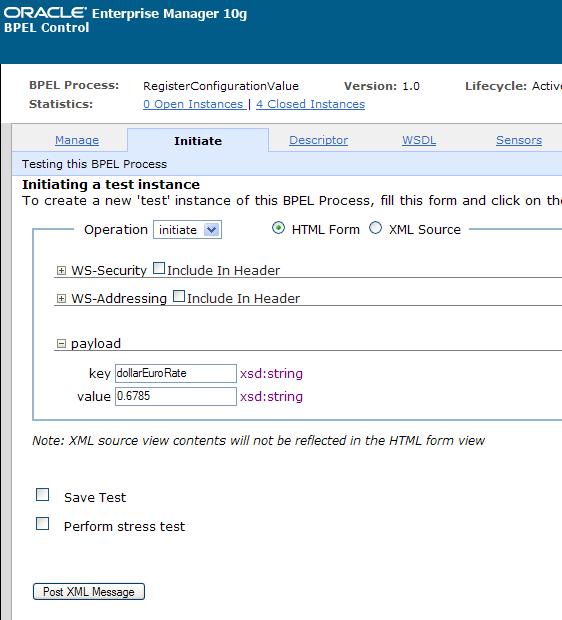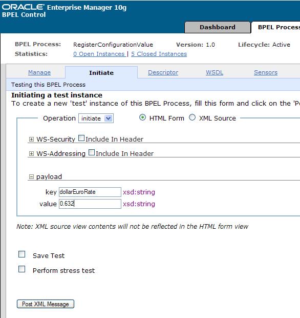 Let’s first create a service to set Configuration Parameter values in the Configuration Manager. Note that these values are retained until overwritten by new values or until the BPEL engine (the JVM) is shut down.