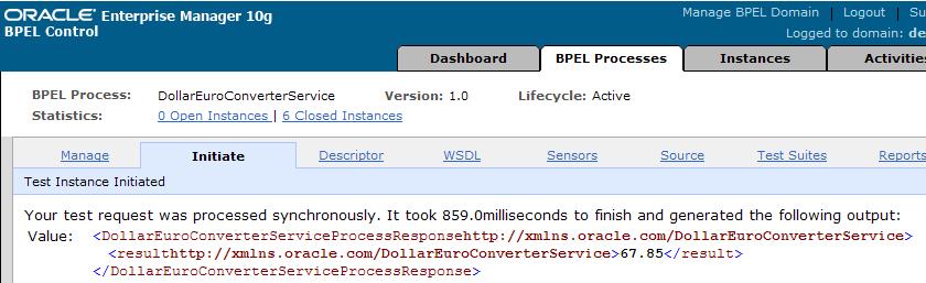 The service is complete. We can deploy the BPEL process to the runtime BPEL PM engine, and start testing it.