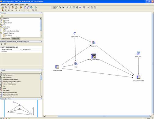 To create a mapping you invoke the mapping editor. This is a graphical tool were you can use drag and drop to create the dataflow. Immediate by creating the first most simple mapping the behavior of this editor was very, very annoying. A typical dataflow is represented for the left to the right on the screen. Initially this was the case but when a property of an operator was adjusted or a new one was added the complete flow was reshuffled. A left to right flow was not detectable anymore. With simple mappings (4 to 5) operators these reshuffled pictures are still understandable. Mapping with a lot more operators become totally abracadabra and you quickly lose your goodwill creating it.
