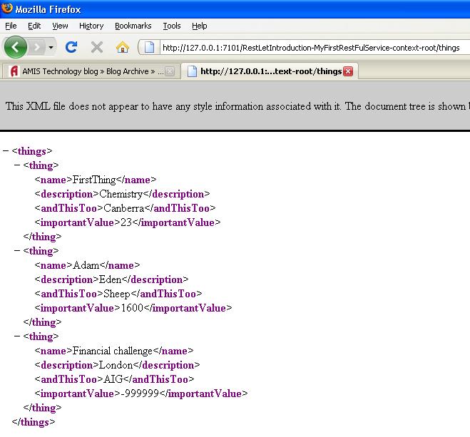 The previous two articles on RESTful services using RestLet and developing in JDeveloper 11g – First Steps with RestLet 1.1RC2 in JDeveloper 11g – restful services 101 and Extending the RestLet application with support for POST/PUT to create and update Resources – used a static data set as source for the Resources. For real world services that will not be your typical scenario. Usually a business service hiding a persistence layer sitting on top of a database or wrapping a web service (RESTful or otherwise) is the more logical publisher of resources.