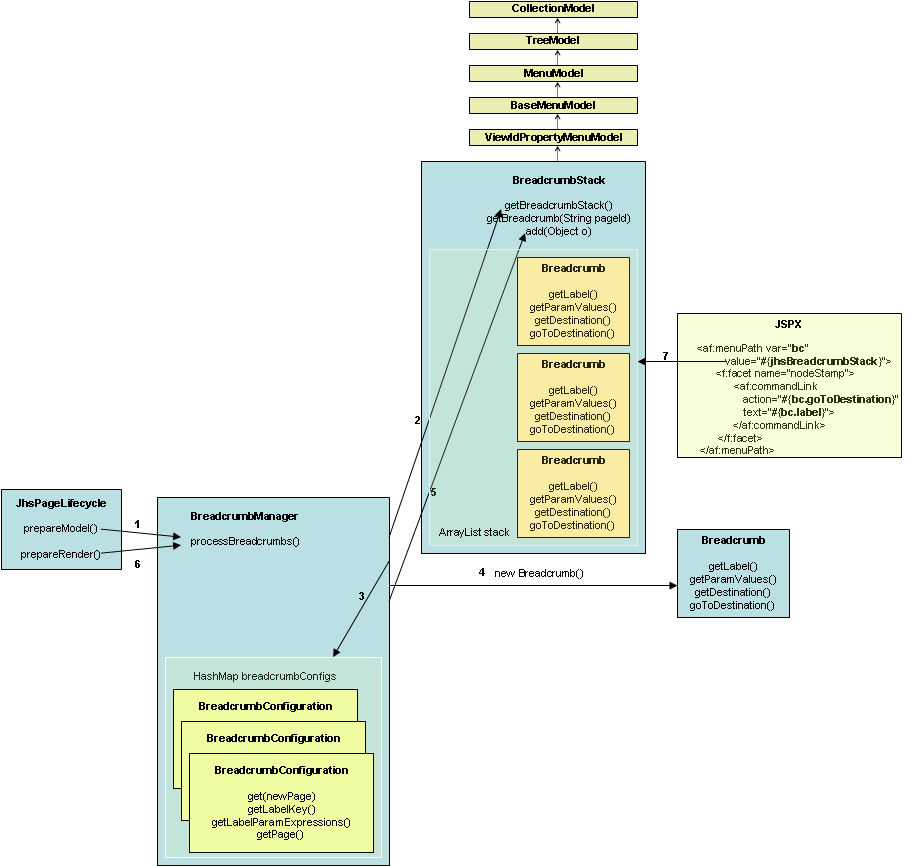 - JhsPageLifecycle calls, in its method prepareModel(), the ‘main’ method of the BreadcrumbManager, that processes the breadcrumb stack.