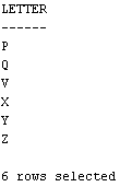 with alphabet as ( select chr(64+rownum) letter from dual connect by rownum < 27 ) select letter from alphabet