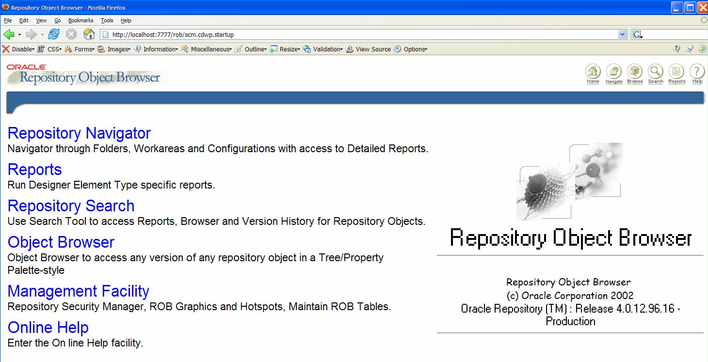After a year full of stuff like Spring, UIX and ADF, JHeadstart, Struts and JSF, XSL-T and the likes, PL/SQL and SQL, I had a bout of nostalgia this week as I participated in a more ‘traditional’ project, although with the very latest versions of the ‘traditional tools’. Designer 10g, WebForms 10g, Headstart 9i-certified-for-10g, Repository Object Browser and CDM RuleFrame. In a way a trip down memory-lane, although I have not done a lot of work with WebForms 10g and I am looking forward to an opportunity to work with JDAPI and WebUtil in practice. And it is nice to have a little family reunion as I still consider both the ROB and CDM RuleFrame as my babies.