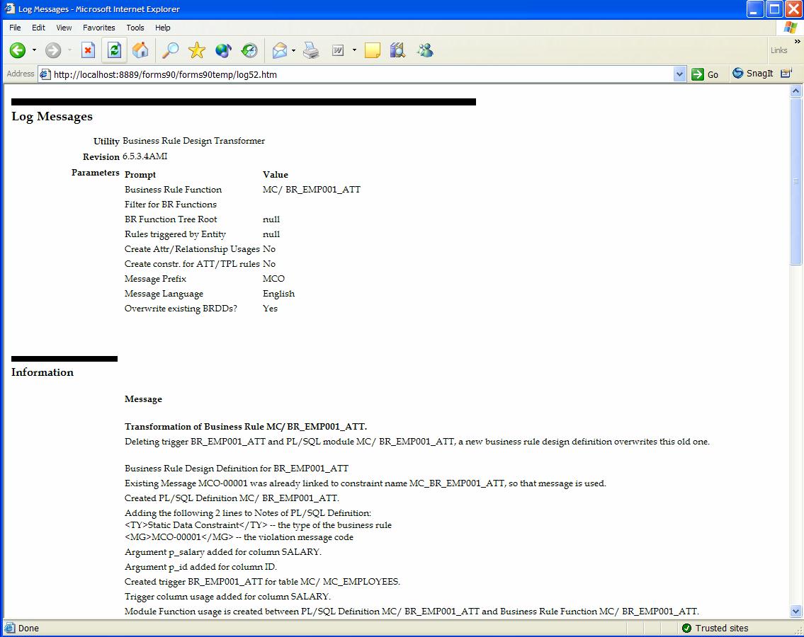 - Overwrite Business Rule Design Definitions – I do not like the fact that the Business Rule Design Transformer cannot overwrite or replace existing Business Rule Design Definitions, if I were to tell it do do that; now I have to manually remove the Business Rule Design Definition (both Trigger and Trigger Module) before I can run the Business Rule Design Transformer on changed Business Rules.