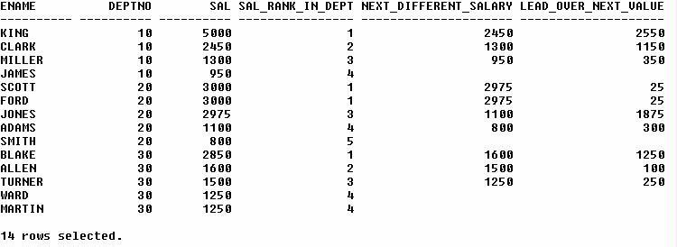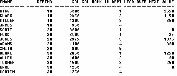 Note: at first I tried to use LEAD( sal,1) with the same OVER() clause. However, in my 10.1.2 database this did not work: I got error messages: