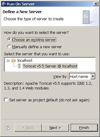 Right click on you project and choose ‘Run As’, ‘Run on server’. You might have to change some settings and include you favorite web container. In the end you should see a window that looks like this: