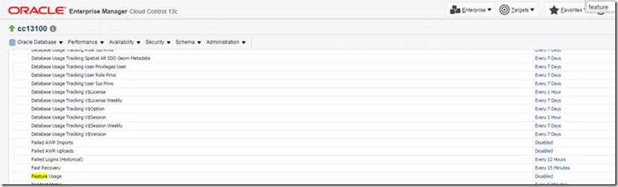 – Enable the metric ‘Feature Usage’ ( Doc ID 1970236.1).