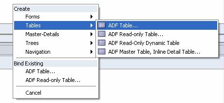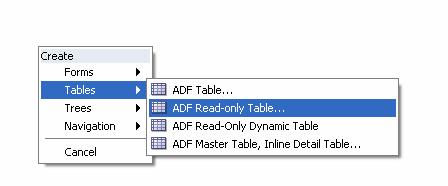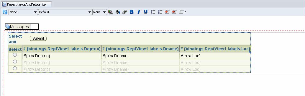 Now let’s create a new JSF JSP page, accepting all defaults (except the new page title). I drag and drop the DeptView collection as a Read Only Table on my page: