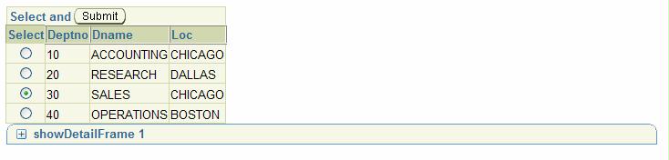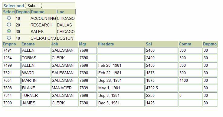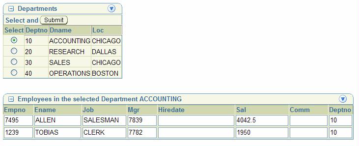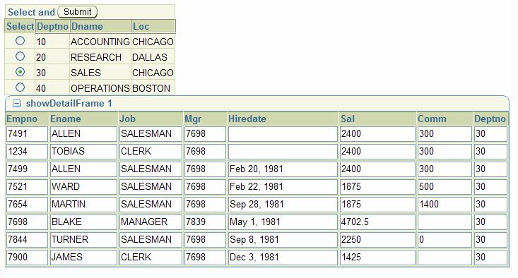 After moving down the Departments – note: moving is a client side operation! no server round trip is required – the Departments are shown below the Employees.