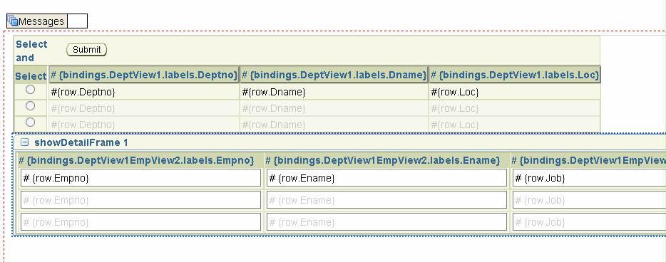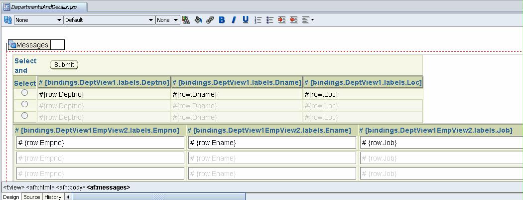 I add the detail EmpView collection as ADF Table: