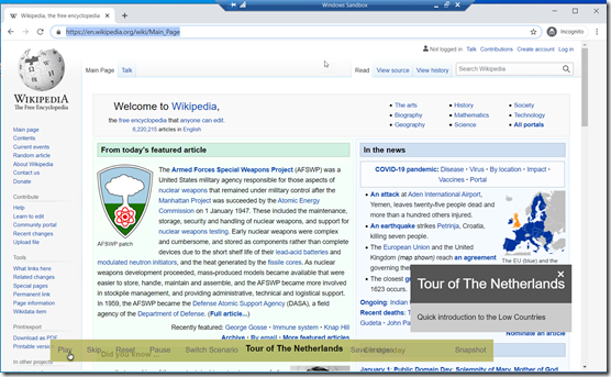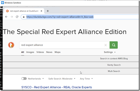I have created a number of quite nice demonstrations of using Playwright – the NodeJS library for automating browser interactions with web applications and websites. In order for my colleagues or any interested party to quickly try out my demonstrations – using Windows Sandbox is a nice vehicle. Because the sandbox has the same starting point for any user, my instructions will work for every user. And because the sandbox is isolated from the main Windows environment there will not be undue interference in either direction. And of course it is dead easy to get rid of the Playwright demo environment once the user is done with it.