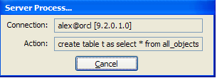 What I really like, when you execute a long running query you get a Server Process modal pop-up window. Even though it “locks up” SQLTools, you can do something else in the mean time (like reading the Amis Technology Blog 😉). And when it’s done, you’ll know. The modal pop-up window will disappear. This pop-up also allows you to cancel the query. This comes in handy when you accidently run that long-running query…