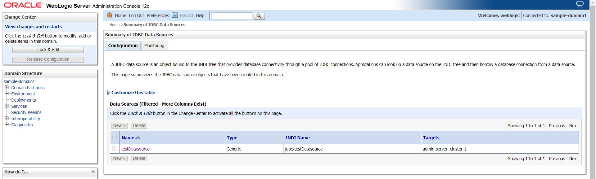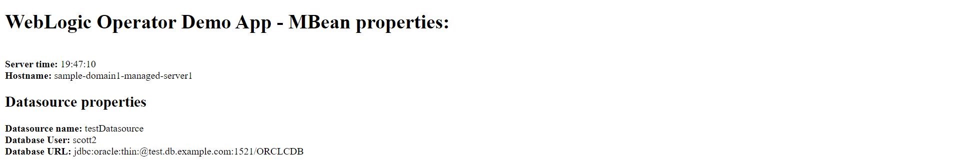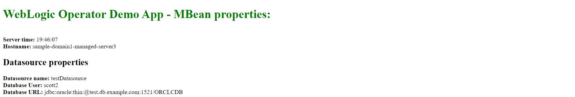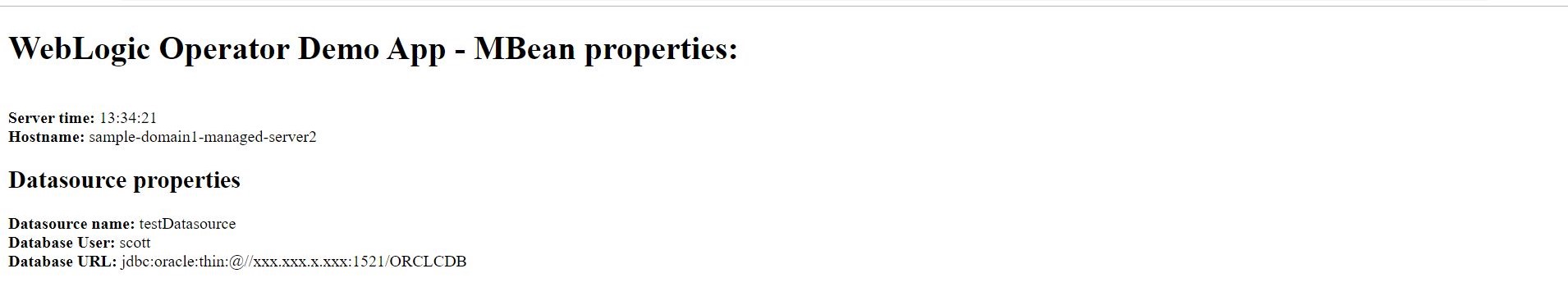 The custom WebLogic image I used, has a JDBC Datasource called testDatasource.
