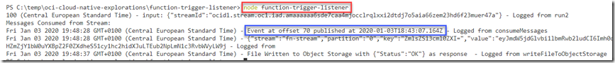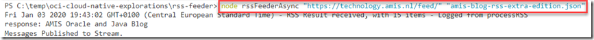 Sources discussed in this article on GitHub: https://github.com/lucasjellema/oci-cloud-native-explorations/tree/master/rss-feeder and https://github.com/lucasjellema/oci-cloud-native-explorations/tree/master/function-trigger-listener.