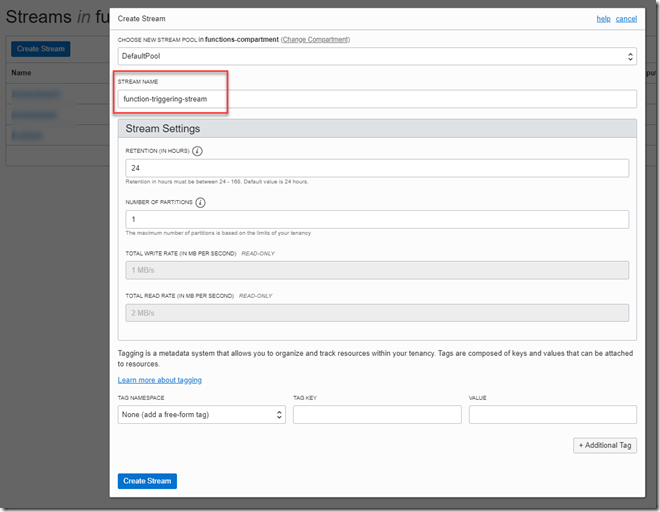 The main differences: Function rss-feeder publishes an event to an Oracle Streaming stream instead of invoking and endpoint on API Gateway and there is a new component – the listener – that consumes the event published by rss-feeder and calls the file-writer endpoint on API Gateway. Nothing needs to change for function file-writer or for the configuration of the API Gateway.