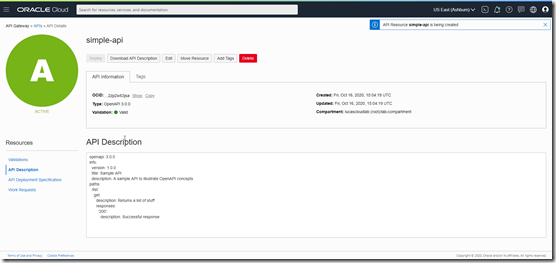 In short, this support means that an API definition can be uploaded to API Gateway, is validated for correctness and can be shared among people accessing the OCI API Gateway definition on OCI. Furthermore, an API Deployment can be created from the imported OpenAPI definition, with routes (of type Stock Response) for the paths in OpenAPI definition. I will demonstrate this in this article.