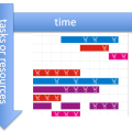A Gantt Chart is basically a matrix report. The horizontal axis represents time, the vertical axis represents tasks or resources and the cells or bars positioned on this time vs. resources grid present an allocation of sorts of the resource in time. The Resource Utilization Gantt in ADF DVT is a slight variation on the theme – and it is where I got some inspiration from. It does not take time as a continuum but rather divides time in periods (days, weeks, months, quarters, years etc.) and presents for each resource its utilization per period through vertical bars.