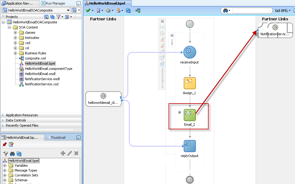 5. Drag an Email activity from the Component Palette and drop it under the Assign Activity.