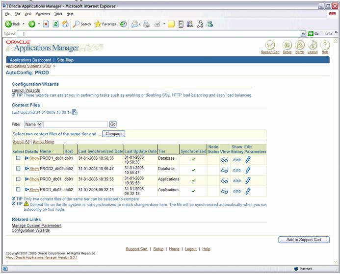 In this example, I am using a basic single-node implementation of Oracle E-Business Suite. I have 2 nodes installed with Oracle RDBMS 10g with Real Application Clusters and Automatic Storage Management, and on the same machines I have the application server installed with a shared APPL_TOP on a shared file system.
