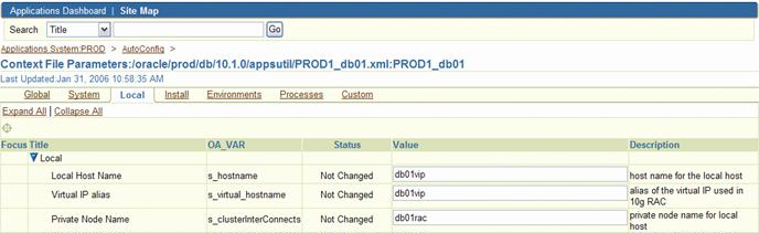 In order to use VIP, you have to change the RDBMS environment so that it will let the listener use the Virtual IP address. To accomplish this, you need to change several autoconfig parameters for the Database Tier: