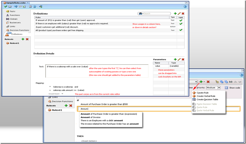 For the Business Rule component, the use of business phrases in 12c will allow the definition of conditions and expressions labeled with meaningful names that can subsequently be used and reused to compose rule conditions and actions. (note: this picture is taken from a roadmap presentation on BPM Suite, presented at OOW 2013 in Shanghai)
