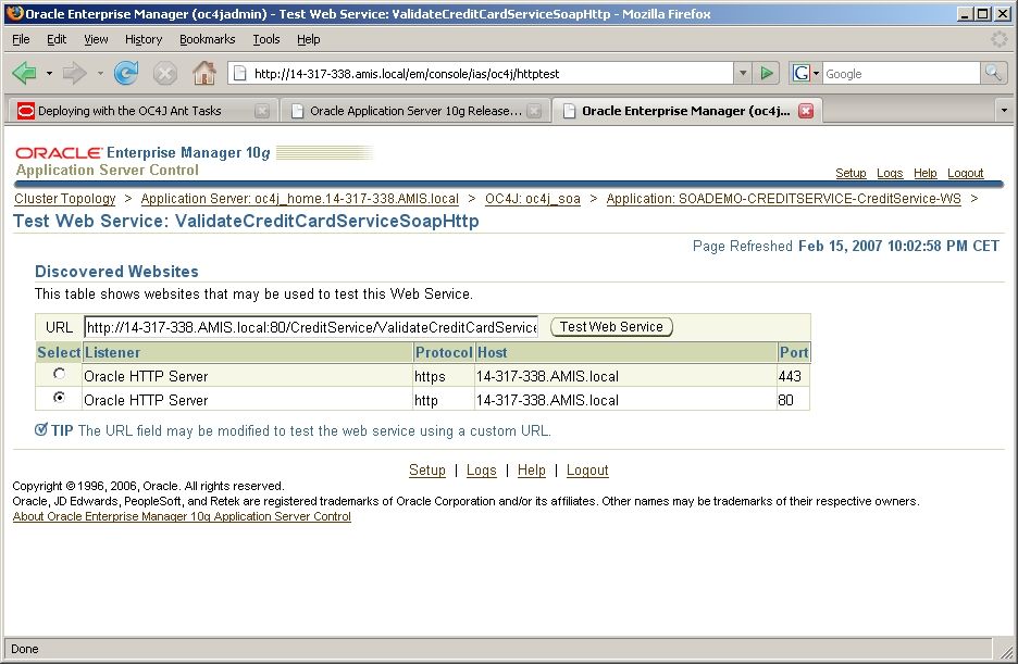 Whether the build was successful can be tested with the Application Server Control that comes with a facility to test Web Services. This is shown in the following screenshot: