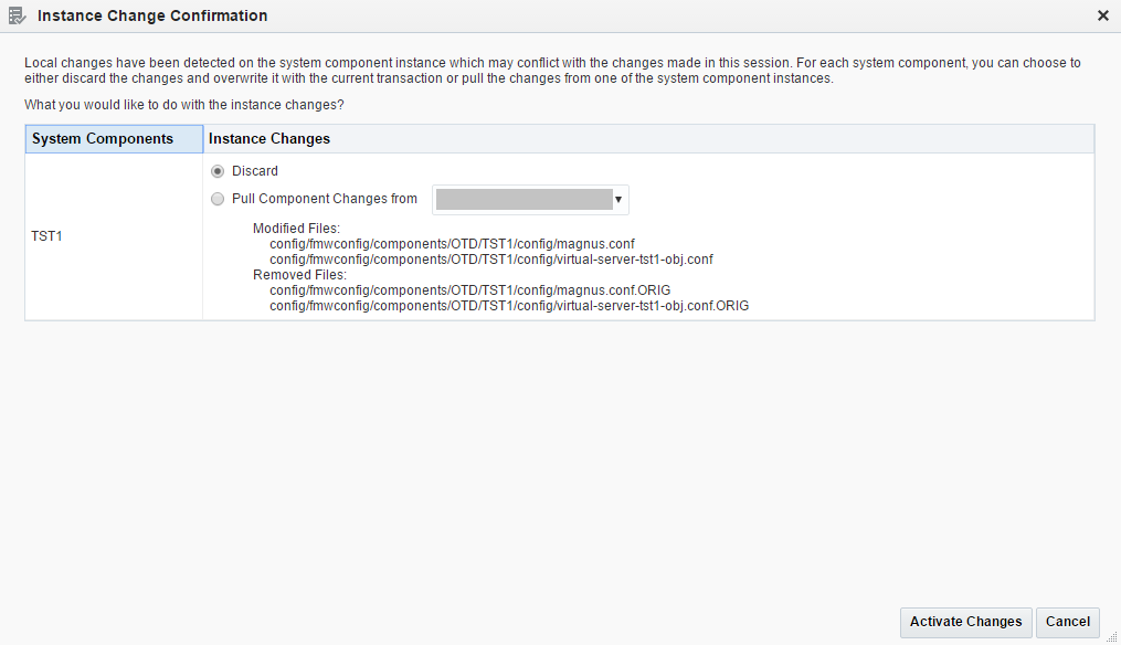 Discard the Instance Changes and Activate Changes.