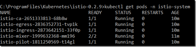 (first I have to remove Istio from minikube: in directory c:\ProgramFiles\Kubernetes\istio-0.2.9