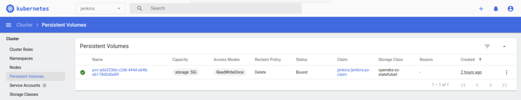 You can also see storage has actually been claimed and that, as specified in the ReplicaCount of the StorageClass, the data is distributed over 3 replica’s.