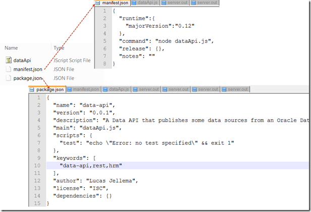 - var oracledb = require(‘oracledb’); — this is the line that brings in the node-oracledb Database Driver. This module does not have to be declared in the package.json meta-file nor does it have to be included in the application archive: it is available out of the box in the Node.js application container on Oracle Application Container Cloud