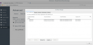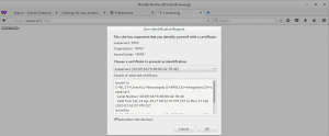 In this case I have SSL enabled for soaserver1 on port 7002. I open https://soaserver1:7002 in FireFox (do not forget the HTTPS part). Since I have enabled ‘Client certs requested and enforced’ in the WebLogic SSL configuration, it will ask me for a client key.