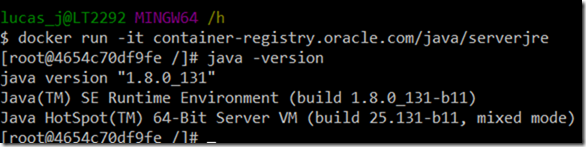 I will focus now on the Java Run Time image – one of the smaller images on the registry – to demonstrate the steps for running it in my local Docker host.