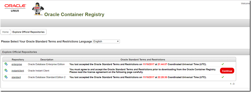 In this article I will give a quick example of how to work this the Oracle Container Registry. It can be found at: https://container-registry.oracle.com .