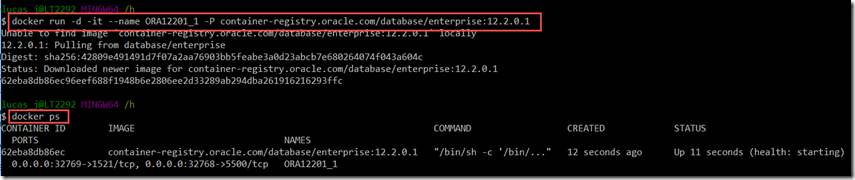 docker run -d -it –-name ORA12201_1 –P container-registry.oracle.com/database/enterprise:12.2.0.1