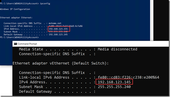 Figured out the IP address for the Sandbox (just use IP Config; in blue is the Sandbox, in black the Windows host):