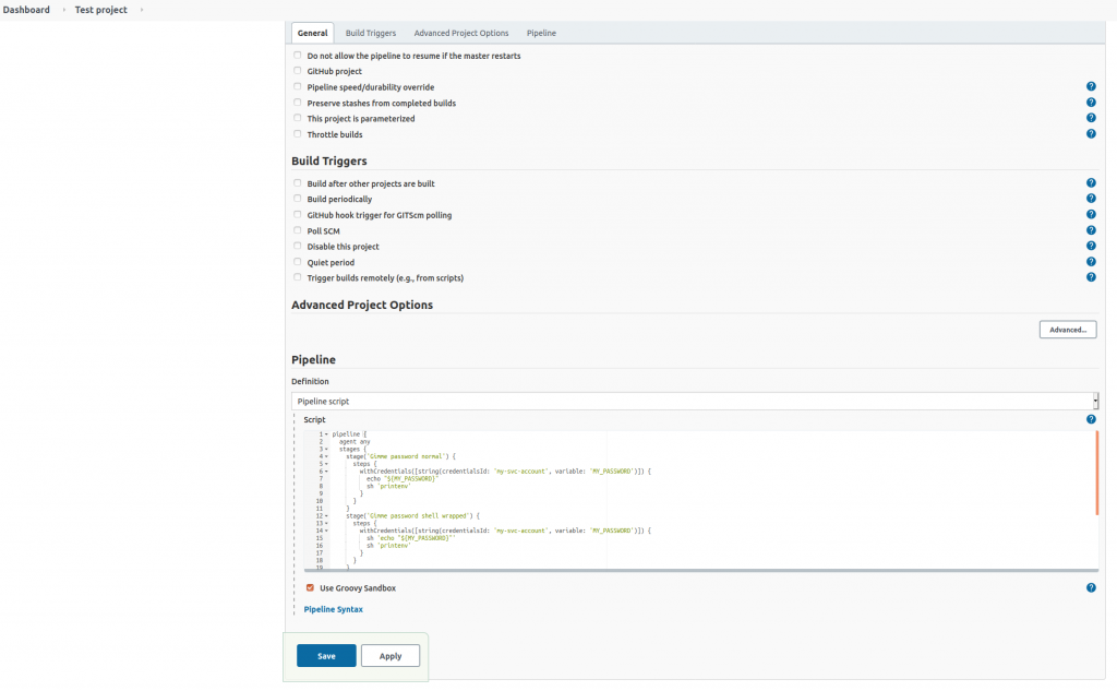 Printing credentials in the Jenkins logging by using a plain echo command, will give you a warning and mask the credential. Even when wrapping the displaying of the credential in a more complicated command, Jenkins still masks it (although without warning). When however base64 encoding the credentials, Jenkins doesn’t recognize them anymore and displays the base64 encoded credentials which you can easily decode using unsafe websites such as this one. Thank you very much!